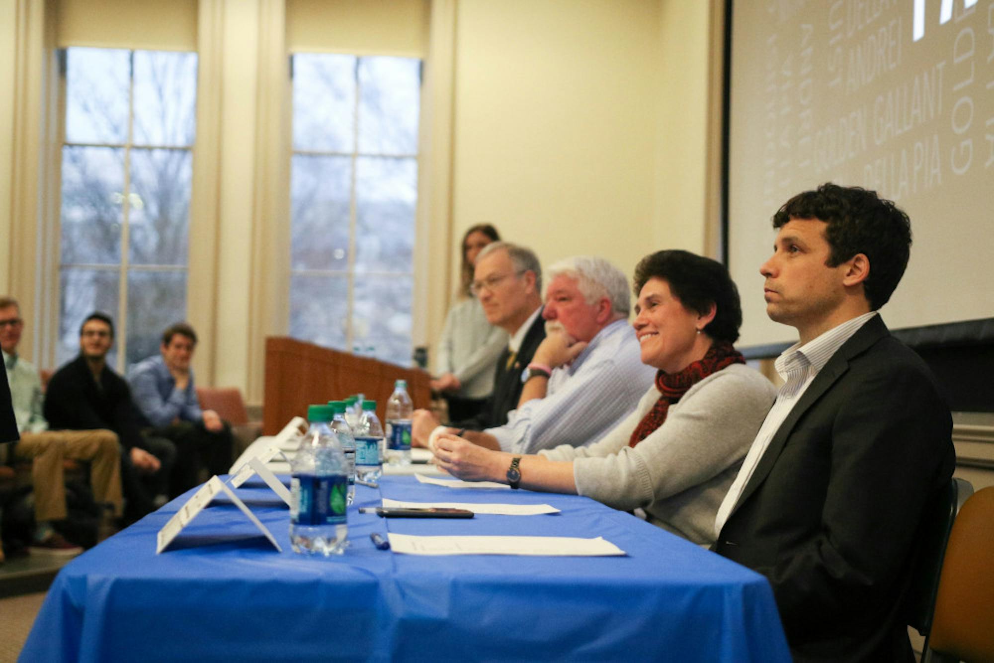 According to Luciano Hamel, roughly 100 community members, including students and staff, attended the panel to watch candidates Linda Andrei, Max Della Pia, Rick Gallant, Tracy Mitrano J.D. ’95, Ian Golden and Eddie Sundquist debate.