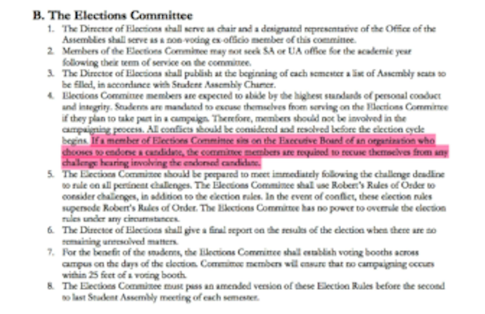 “Any former [director of elections] or any former elections committee member may have an opinion, but at the end of the day, that final interpretation lies with the current elections committee,” Cabbell said. “In regards to the way the rule is written and the way the elections committee interpreted it, … all the members that needed to recuse themselves did.”