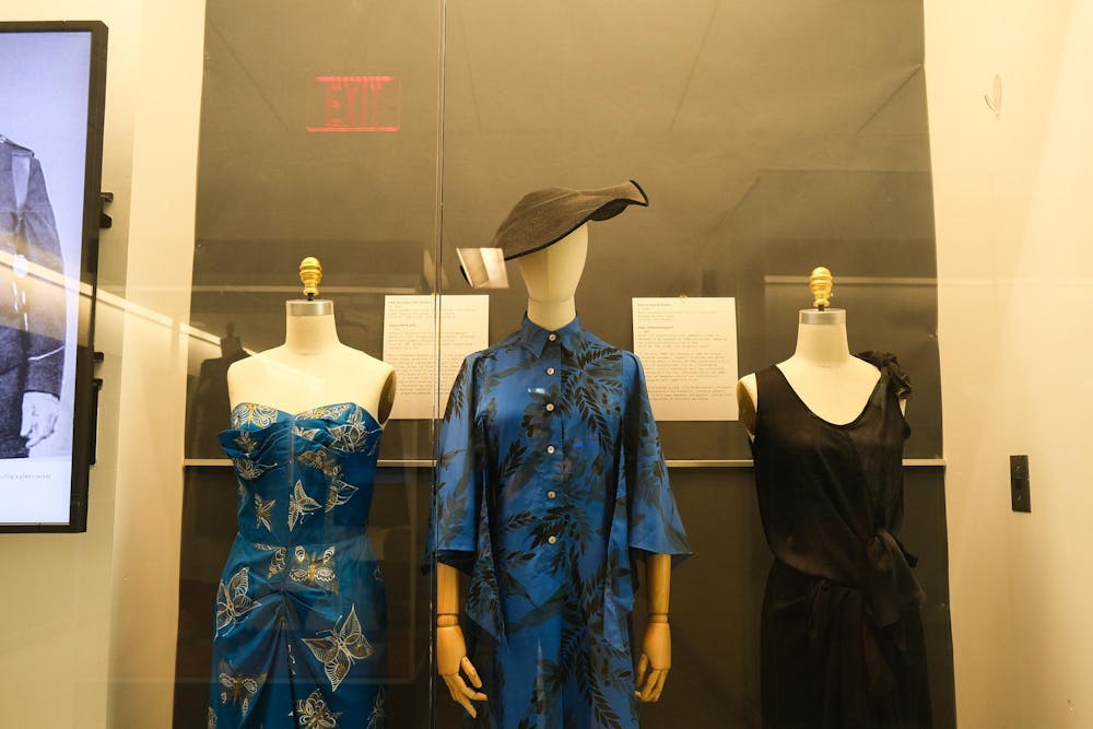 Exhibition of printed dresses from the Fit for Duty Display in the Human Ecology Building, Feb.6.2026, (Adelaide Chow/ Sun Staff Photographer)