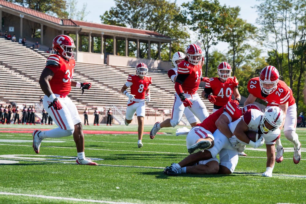 Cornell football competes against Colgate at Schoellkopf Field for the 2025 homecoming match on Oct. 4, 2025. Nathan Ellison