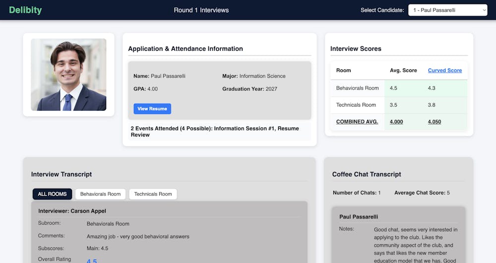 A sample Delibity candidate profile which helps recruiters decide which candidates to accept to a club. (Photo courtesy of Paul Passarelli)