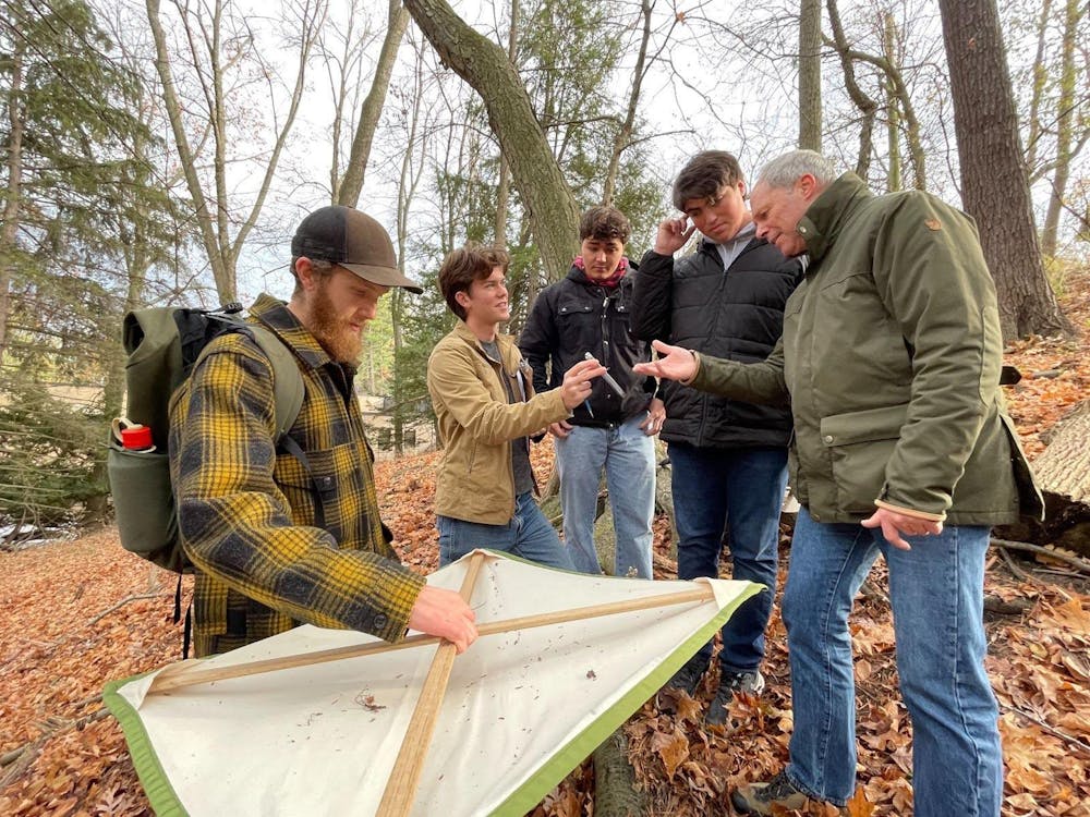 Professor Marc Goebel (pictured right) with Nicholas Dietschler, Research Support Specialist of the New York State Hemlock Initiative (pictured left), and NTRES 2100 students exploring treatment methods on Hemlock trees. Photo courtesy of Matthew Del Buono, Extension Aide of the New York State Hemlock Initiative.