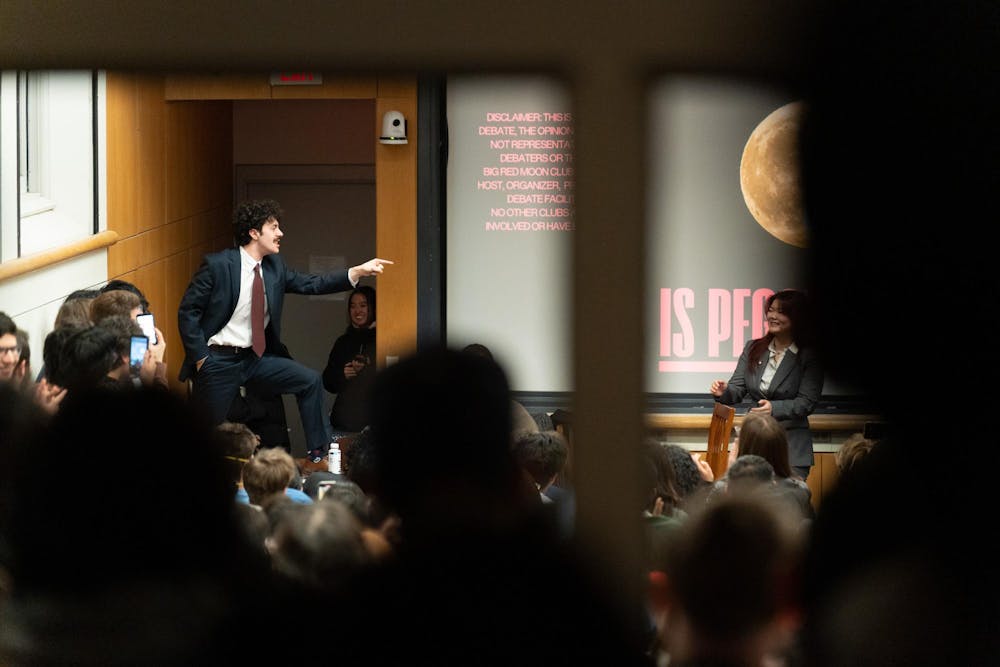 Big Red Moon Club hosts an "Is Pegging Gay?" debate in the Goldwin Smith Hall Kaufman Auditorium, Feb. 10, 2026. (Stephan Menasche/Sun Assistant Photography Editor) Stephan Menasche