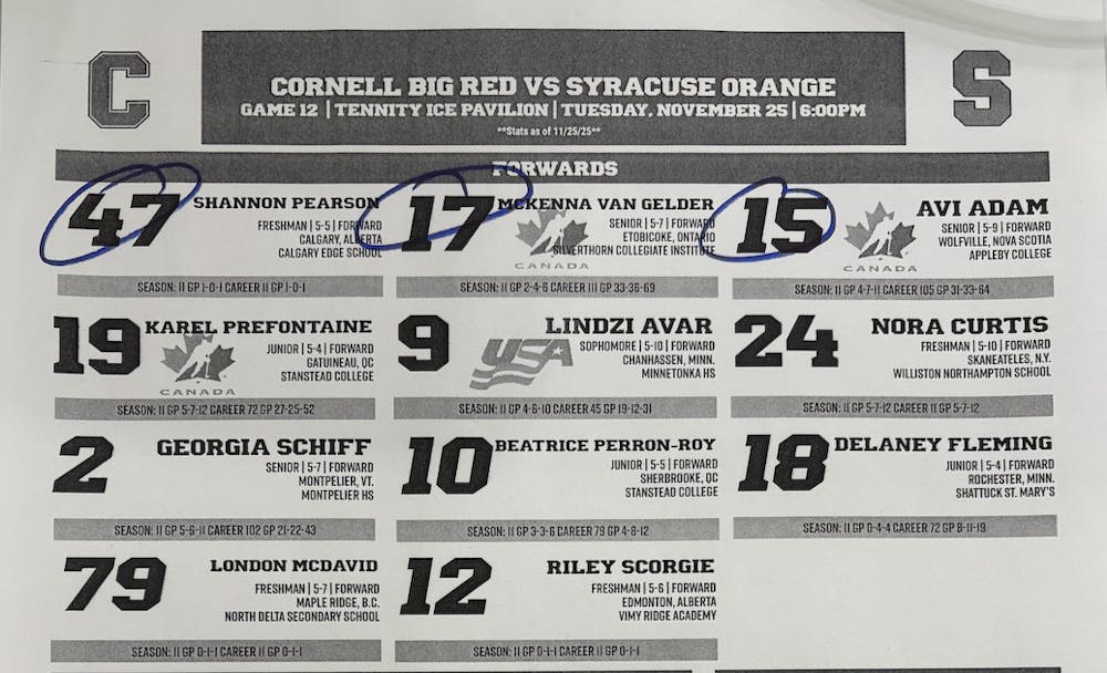 CuseLines_1.png Cornell's forward lines versus Syracuse (starters circled). Photo courtesy of Cornell Athletics.
