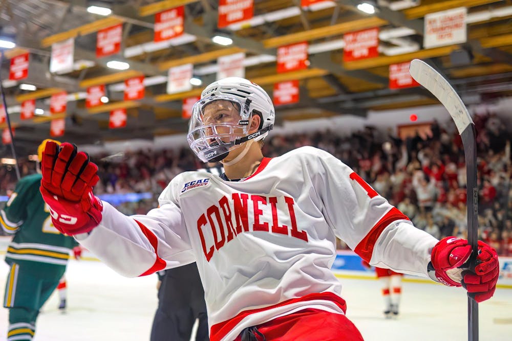 Caton Ryan scored on the power play in the close 2-1 win for Cornell. Photo courtesy of Ben Kerstetter/Cornell Men's Hockey.