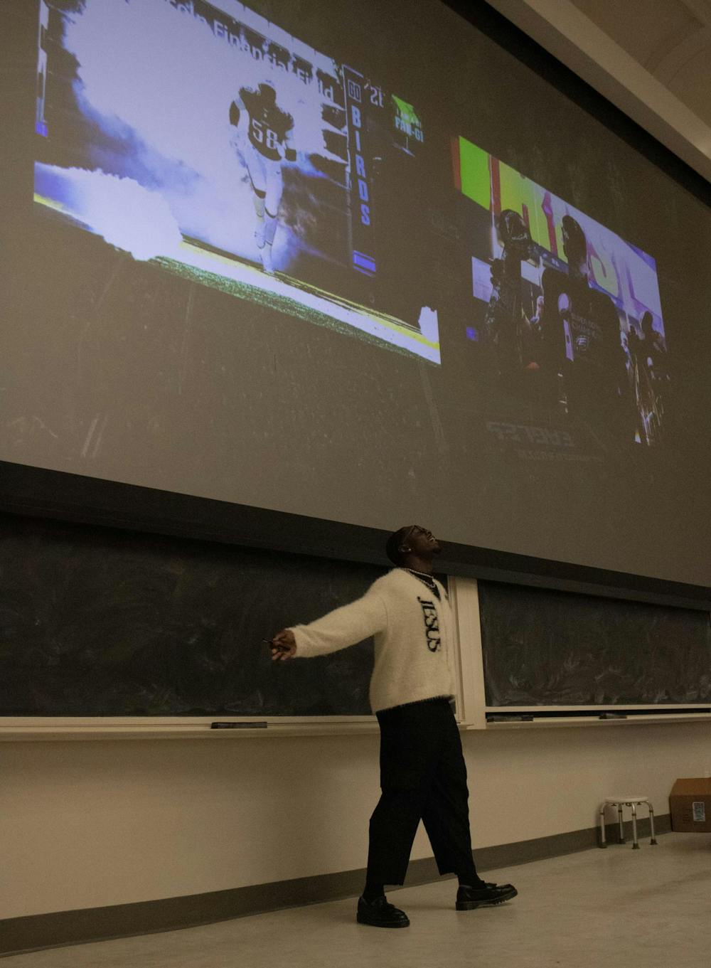 Jalyx Hunt basking in glory beneath photos of him winning the Super Bowl, showing off his walk out to the field. Rosey Limmer