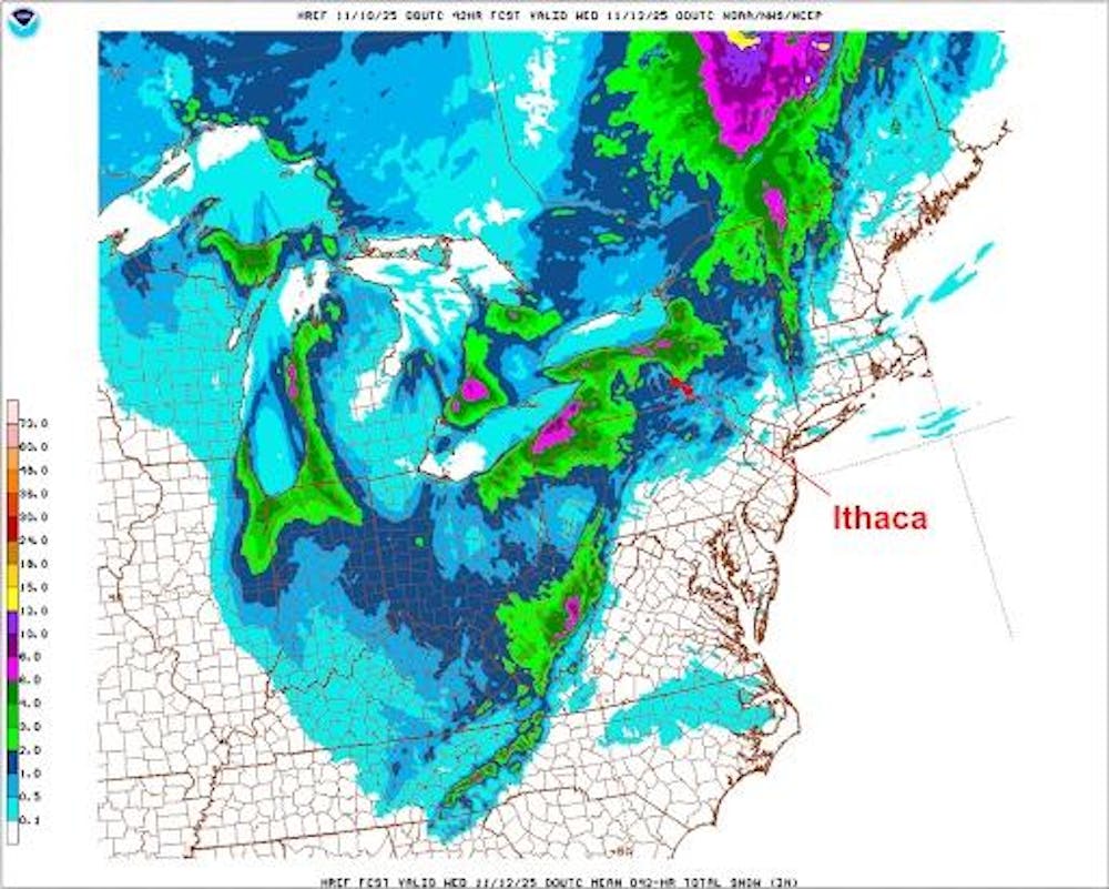 Total snowfall accumulation between 1 a.m. Monday morning and 7 p.m. Tuesday night (High-Resolution Ensemble Forecast (HREF) model from the NOAA Model Analyses and Guidance). Chris Owen