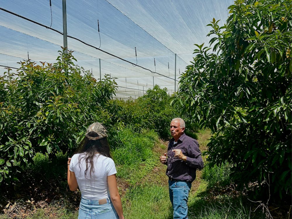 Isabel Téllez '28 and Atlantrees co-founder Udi Landau at the high-tech avocado farm Atlantrees in Montargil, Portugal. (Photo courtesy of Isabel Téllez '28)