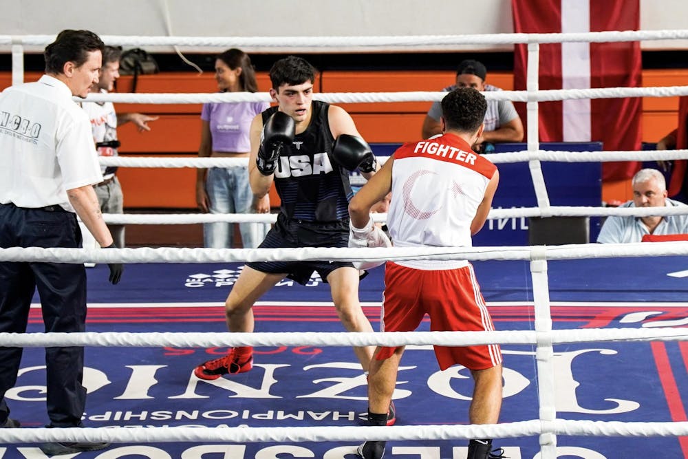 Will MacLeod ’26 stands ready in a chessboxing bout, which consists of alternating, three-minute rounds of chess and boxing with one-minute of rest between. (Provided by Will MacLeod ’26)