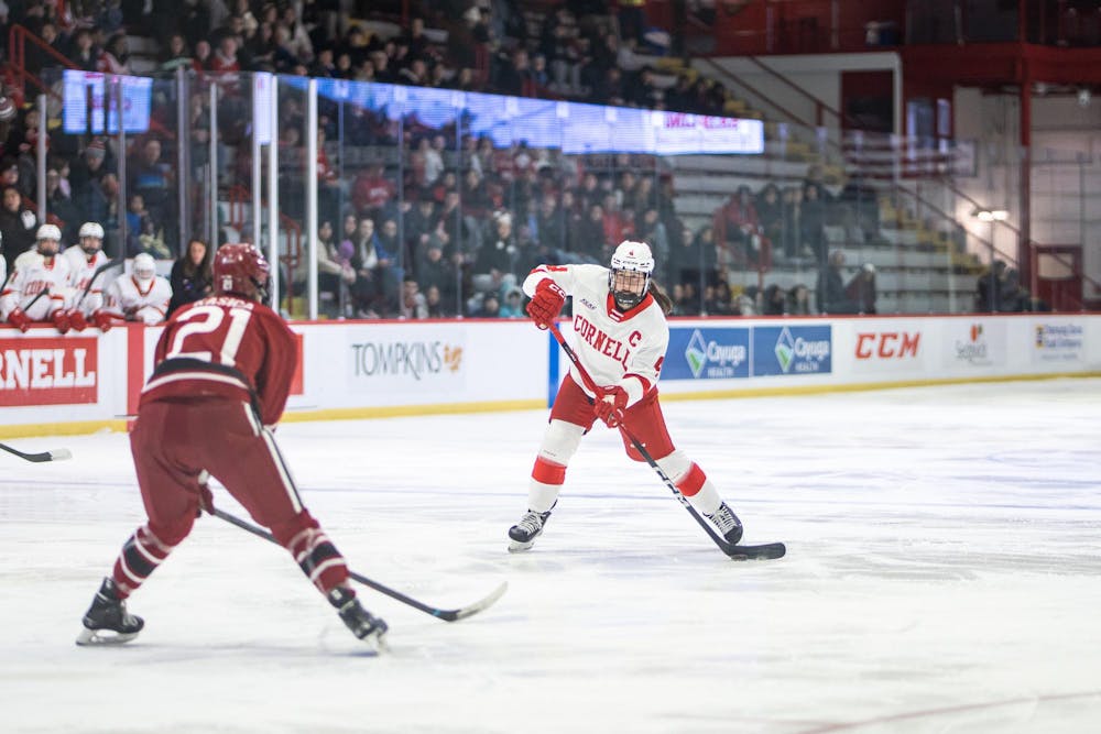Senior defender Grace Dwyer lines up a shot against Harvard. Cornell fell 3-1 to the Crimson, it's third consecutive Saturday loss.