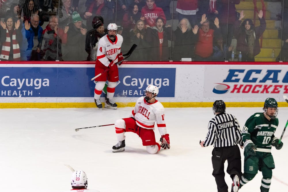 Jake Kraft celebrates after scoring an overtime goal to beat Dartmouth 2-1. Cynthia Tseng