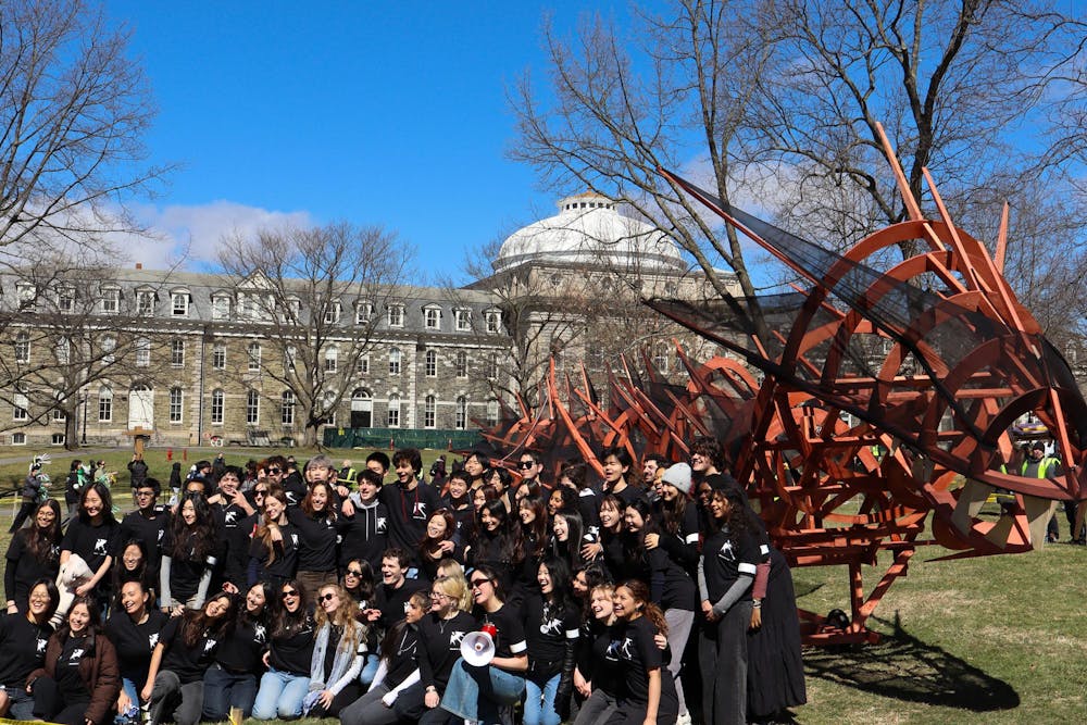 A group of Architecture students in front of the sculpture.