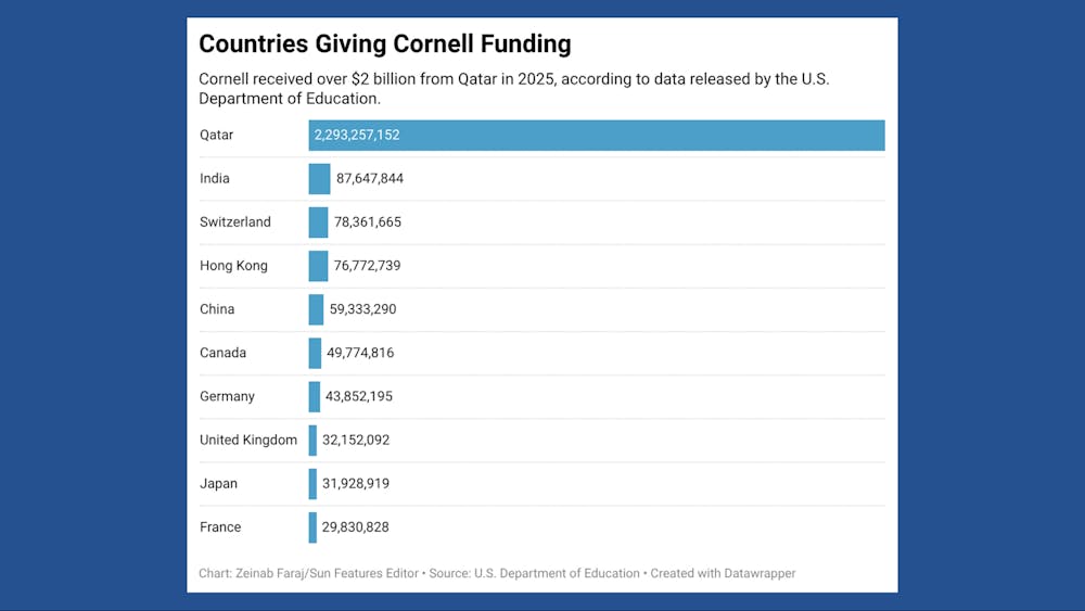 Cornell received most of its foreign funding from Qatar, according to data from the U.S. Department of Education.