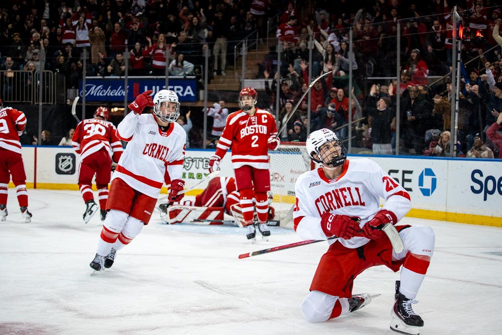Freshman forward Reegan Hiscock scored a goal to make it 1-1 against Boston University at Madison Square Garden. Grady Millones