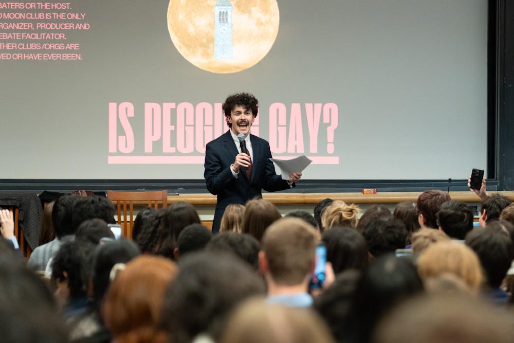 Big Red Moon Club hosts an "Is Pegging Gay?" debate in the Goldwin Smith Hall Kaufman Auditorium, Feb. 10, 2026. (Stephan Menasche/Sun Assistant Photography Editor)