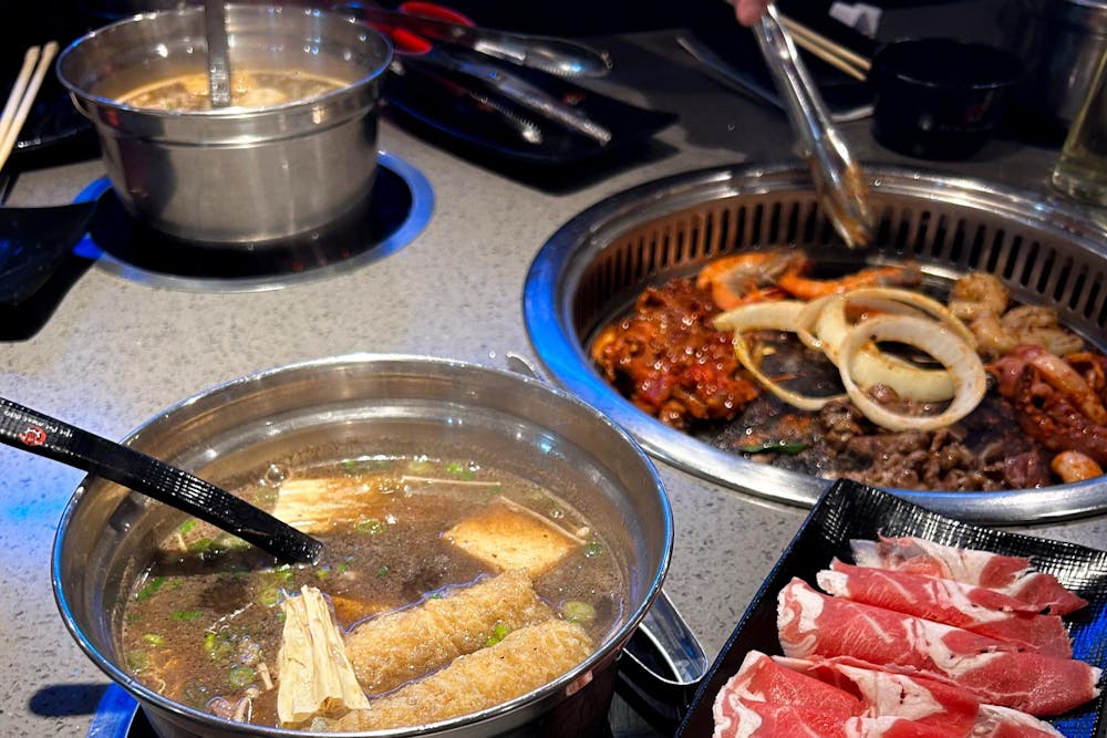 128EB9F6-8721-4A96-B95D-A63D59B15EB2.jpg Hot pot meal from Hot Pot Meets BBQ (Courtesy of Mark Nguyen)