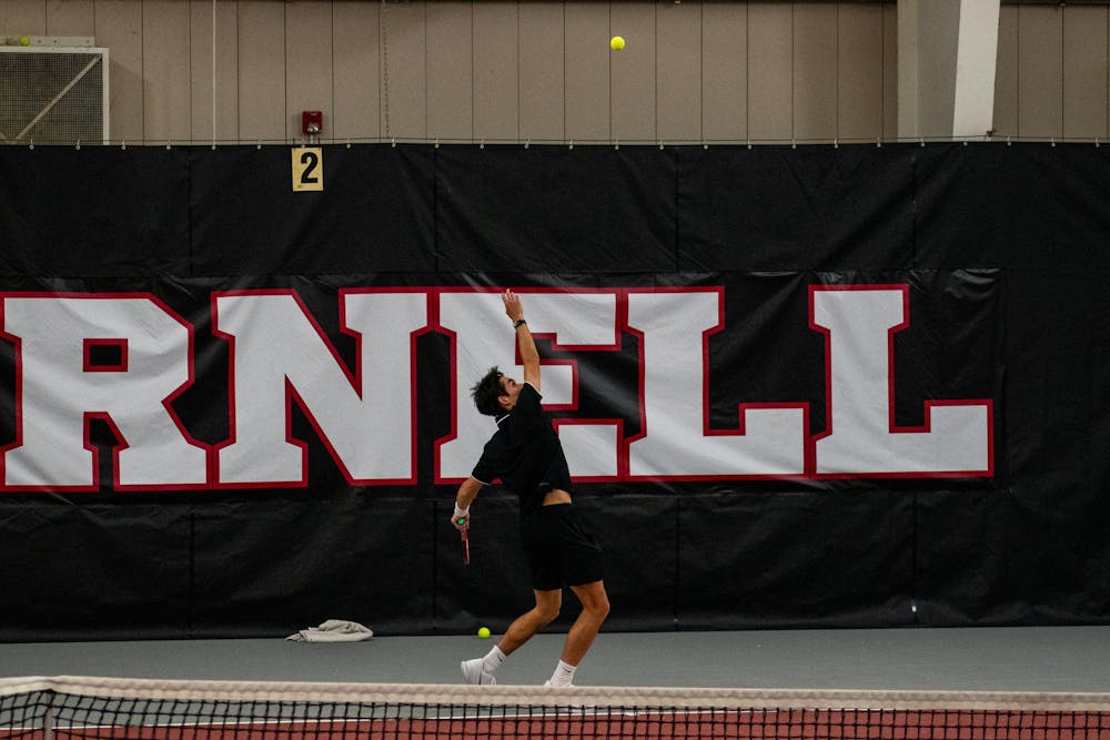 Senior Nathan Mao serves against Princeton, Apr. 11, 2025. Camille Eckert