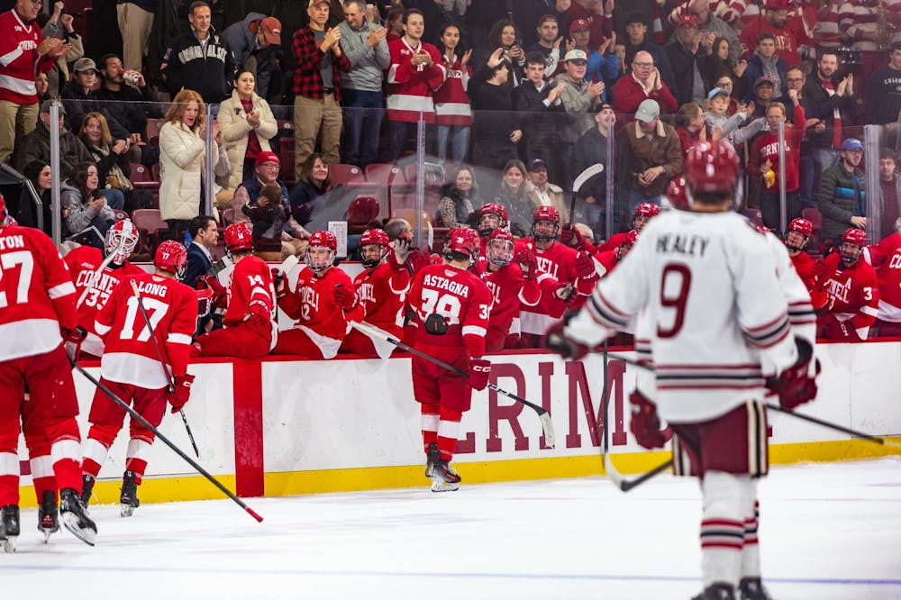 Junior forward Jonathan Castagna scored his first two goals of the season in the win at Bright-Landry Hockey Center. Leilani Burke