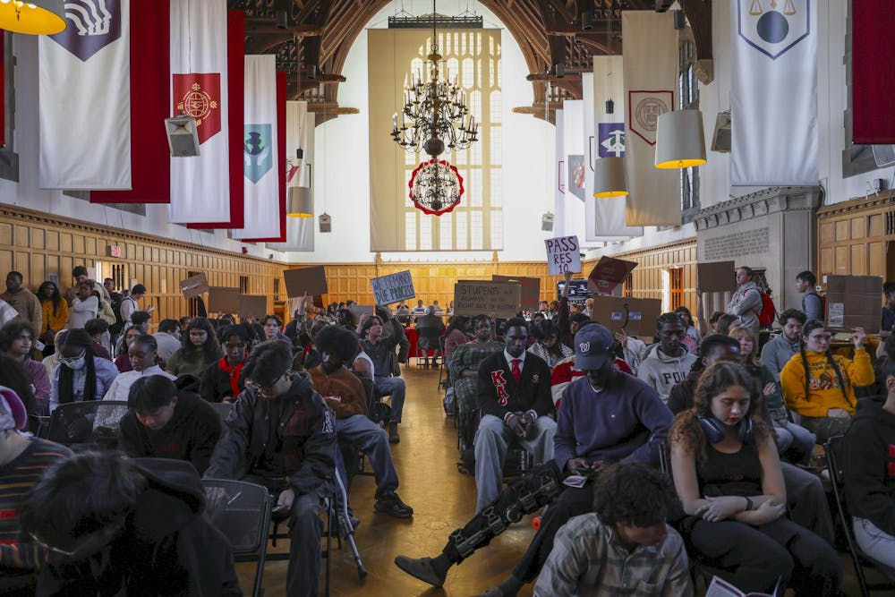 Students turned their backs on President Michael Kotlikoff as he adressesed the Student Assembly. October 9, 2025. (Benjamin Leynse)
