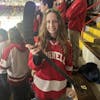 Ashlyn Hutchinson ’26 shows off her portion of a broken Harvard stick.
