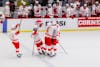 Junior forward Ryan Walsh celebrates after a Cornell goal in the Red's 5-2 win over Harvard.