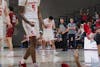 Mateen Rafiq '28 hits a big three against Colgate, Newman Arena, Nov. 20, 2025.