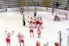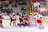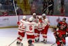 The Red celebrates after a goal against Colgate.