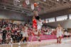 Adam Hinton '26 steps back against Harvard, Newman Arena, Feb. 21, 2026.
