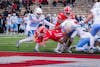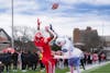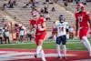 John McAuliffe '29 celebrates TD against Bucknell, Schoellkopf Field, Oct. 18, 2025. (Timmy Xi/Sun Staff Photographer)