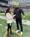 Aditi Kinkhabwala ’00 chats with former head coach of the New York Jets Robert Saleh. (Photo courtesy of Aditi Kinkhabwala)