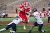 A Cornell running back hurdles over Bucknell defenders, Schoellkopf Field, Oct. 18, 2025.