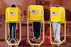 Students vote in the 2024 presidential election between classes.