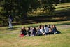 Cornell students were invited by the Cornell Democrats to meet four local candidates running for the Ithaca Common Council and the Tompkins County Legislature on Monday. Pictured left to right in the front: Prof. Judith Hubbard, earth and atmospheric sciences, Robin Trumble, Adam Vinson ’25 and Hannah Shvets ’27. (Courtesy of Ameera Aftab ’26)