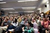 The crowd cheers at the Big Red Moon Club and Perfect Match Bisexual Pop the Balloon event in Goldwin Smith Hall, Feb. 20, 2026. (Stephan Menasche/Sun Assistant Photography Editor)