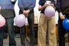 Contestants for the Big Red Moon Club and Perfect Match Bisexual Pop the Balloon event prepare in a room nearby in Goldwin Smith Hall, Feb. 20, 2026. (Stephan Menasche/Sun Assistant Photography Editor)