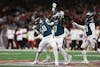 Hunt celebrates his take down of Kansas City Chiefs quarterback Patrick Mahomes during Super Bowl LIX. (Photo courtesy of Jalyx Hunt)