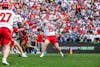 Brian Luzzi '25 shoots against Maryland, Gillette Stadium, May 26, 2025. (Timmy Xi/Sun Staff Photographer)