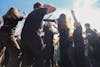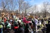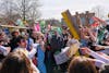 Students form a dance circle and celebrate the 125th Dragon Day parade.