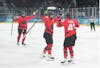 Kristin O'Neill ’20 celebrates after scoring a goal versus Czechia. Photo courtesy of Chris Tanouye/IIHF.