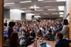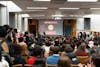 People overfilled the Kaufman Auditorium for Big Red Moon Club's "Is Pegging Gay?" debate in Goldwin Smith Hall, Feb. 10, 2026. (Stephan Menasche/Sun Assistant Photography Editor)