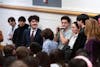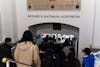 People standing outside of the Kaufman Auditorium entrance to catch a glimpse of Big Red Moon Club's "Is Pegging Gay?" debate in Goldwin Smith Hall, Feb. 10, 2026. (Stephan Menasche/Sun Assistant Photography Editor)